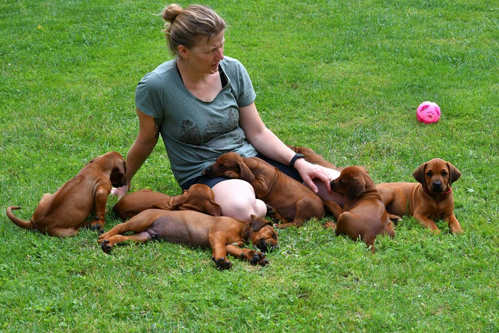 Unsere kleinen Wunder sind mittlerweile 8 Wochen alt – kaum zu glauben, wie schnell die Zeit vergangen ist! Aus tapsigen Hundebabys sind kleine, selbstbewusste Ridgebacks geworden, die mit ihrem Charme und ihrer Neugier unser Herz im Sturm erobert haben.